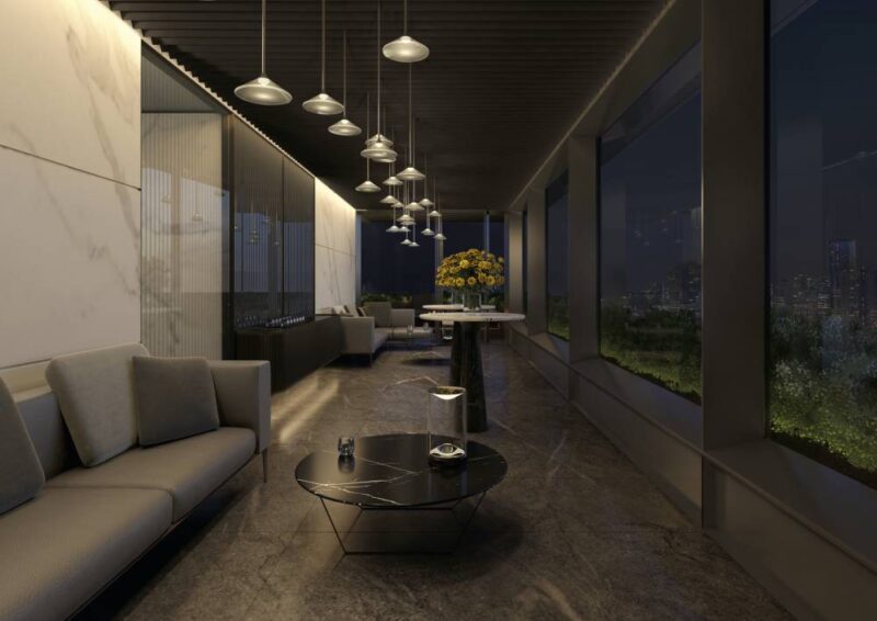 Residents can unwind at the wine lounge, immerse themselves in literary treasures in the library, or find serenity in the sky garden. Active and wellness-focused individuals will appreciate the heated pool, golf simulator, yoga studio, and fitness center, while those seeking indulgence can retreat to the massage room and salon.